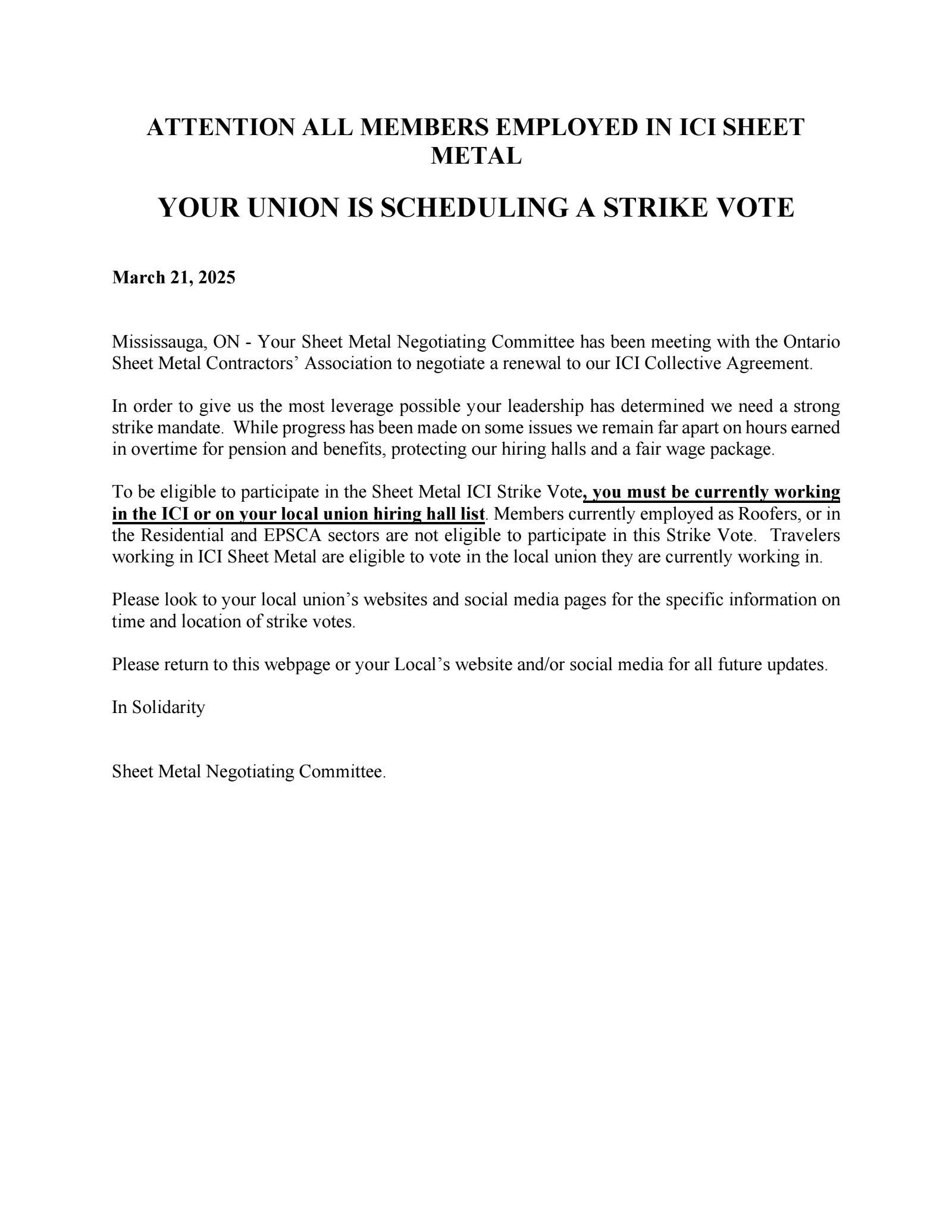 Sheet Metal and Roofers Local 30 is seeking experienced trades people: