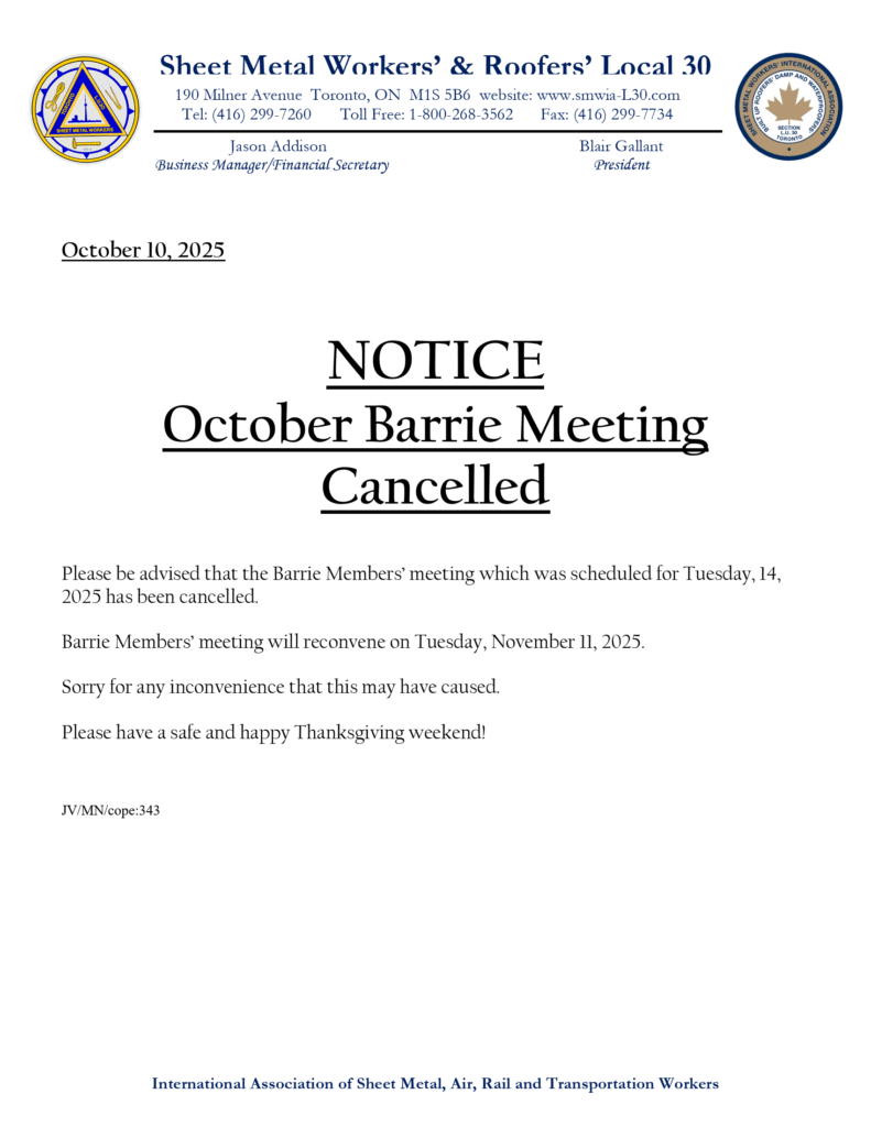 October Barrie Meeting Cancelled